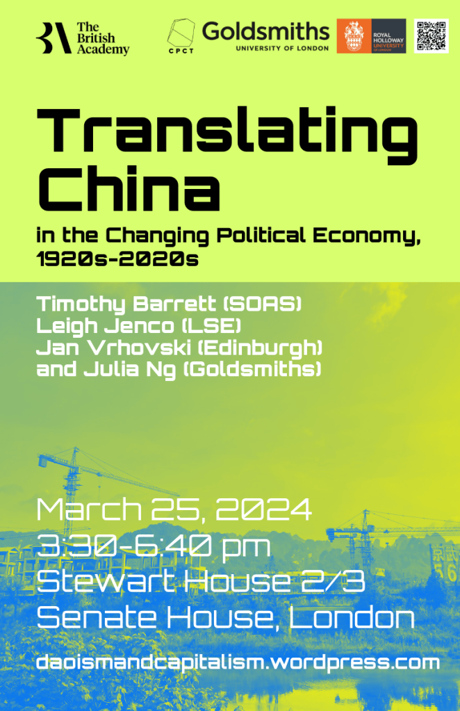 We often hear about China in the news in connection to changes in the global political economy—concerning, for instance, the new infrastructural world order (Belt and Road Initiative), supply chains and their dependencies, and rebalances in the relation of law and traditional culture (tianxia or ‘Chinese’ universalism; ‘civilisational’ harmony). Yet much less consideration has been given to the direct impact that cultural translations broadly conceived and moving in multiple directions have on the fashioning of ‘China’ as a new global political and economic actor. Drawing examples from the British-German-Chinese 1920s for the 2020s, this public symposium and roundtable will explore the links between: (i) the teaching of modern non-European languages and the setting up of institutions to facilitate this teaching (e.g., SOAS) in support of British and German trade interests abroad; (ii) the specific role that philosophical and literary translations play in constructing the image of China as a political and economic counterpart during times of shifting geopolitical relations; (iii) the contribution of public intellectuals such as Bertrand Russell and Richard Wilhelm; and (iv) reinventions of Confucian and Daoist traditions by public intellectuals seeking to legitimise or criticise policy in China. How might a consideration of these moments in the translative process help us more deeply understand and critically analyze the pictures of political economy given to us in times of seemingly unprecedented change?